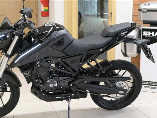 Srdcem motocyklu je kapalinou chlazený čtyřtaktní jednoválec o objemu 124,8 cm³ s rozvodem DOHC, který nabízí maximální výkon 11 kW (15 PS) a točivý moment 12 Nm. Motor je kultivovaný, ochotně se vytáčí a ve spojení se šestistupňovou převodovkou poskytuje zábavný a zároveň předvídatelný projev. Velkou výhodou jsou nízké provozní náklady – spotřeba pouhých 2,3 l / 100 km a dojezd až kolem 400 km díky 10litrové nádrži. Samozřejmostí je splnění emisní normy EURO 5 + .