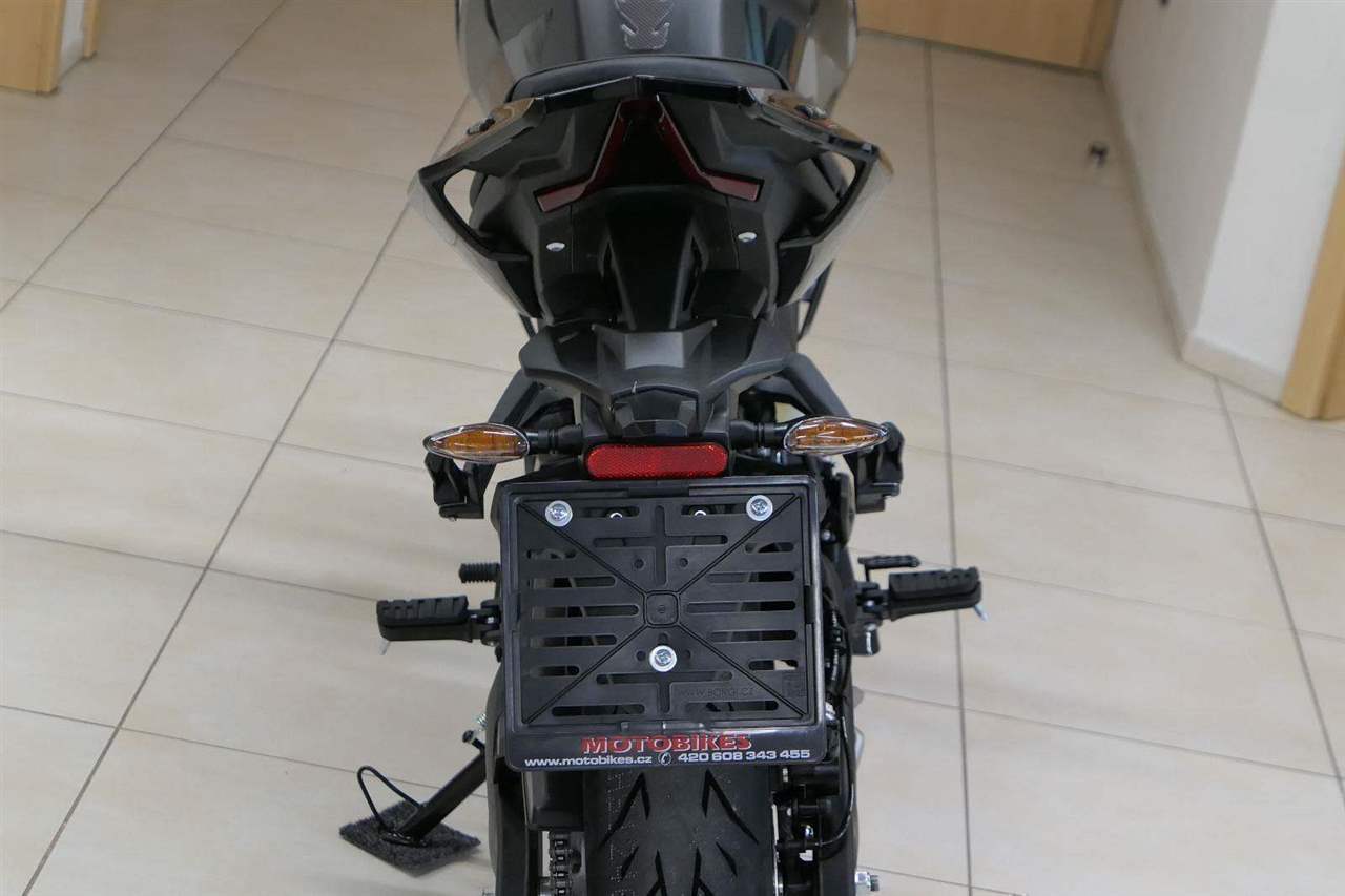 Podvozek je naladěn sportovně, ale přívětivě. Přední upside-down vidlice Ø 35 mm a zadní centrální tlumič zajišťují jistotu v zatáčkách i komfort při běžné jízdě. O bezpečné brzdění se starají kotoučové brzdy vpředu i vzadu doplněné o ABS, které je v základní výbavě. Díky provozní hmotnosti 136 kg je motocykl velmi snadno ovladatelný i pro méně zkušené jezdce.