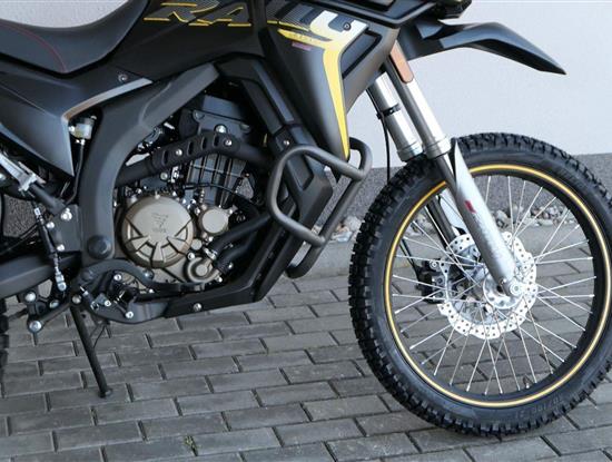 Míň je někdy víc. Řekli si vývojáři ve světoznámý fabrice Loncin a navrhli mě jako lehký a obratný enduro. S plnou nádrží mám pouhejch 158 kilo, takže se mnou snadno můžeš dělat psí kusy v terénu. Tomu nahrává i můj živej motor – čtyřtaktní jednoválcovej vodník vo objemu 292 cm3 a s výkonem přes 28 koní. Uvidíš, že se nezaleknu žádnýho stoupání a hravě si poradím se šutráky i s hlubším bahnem. Do karet nám bude hrát taky moje světlá vejška 280 mm.