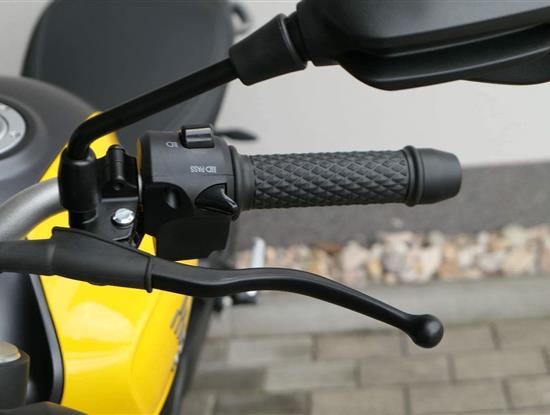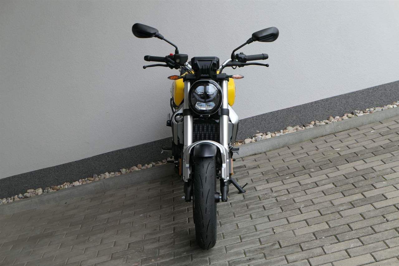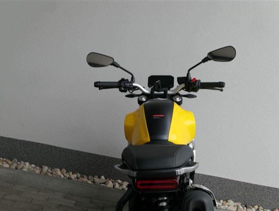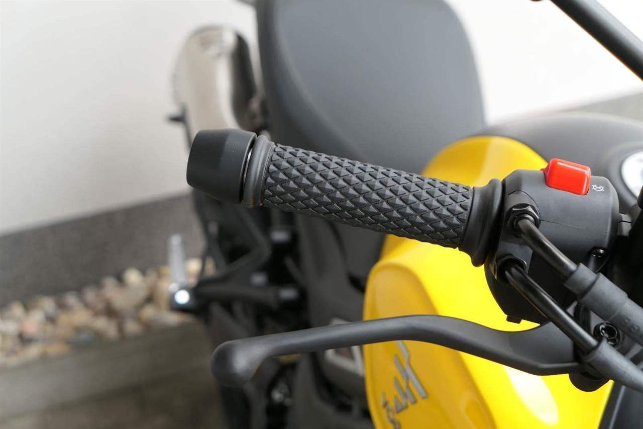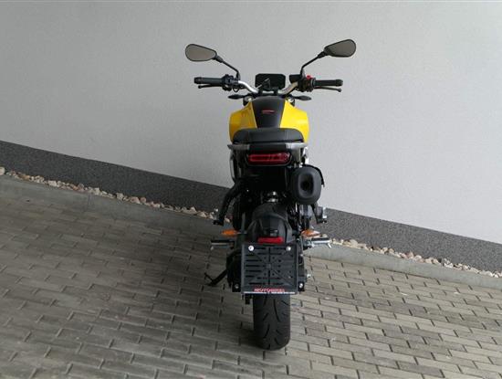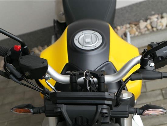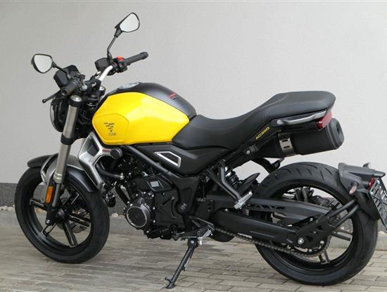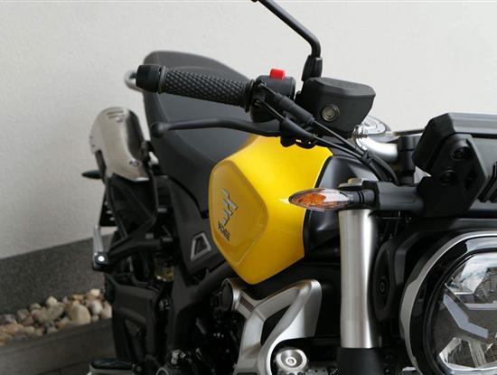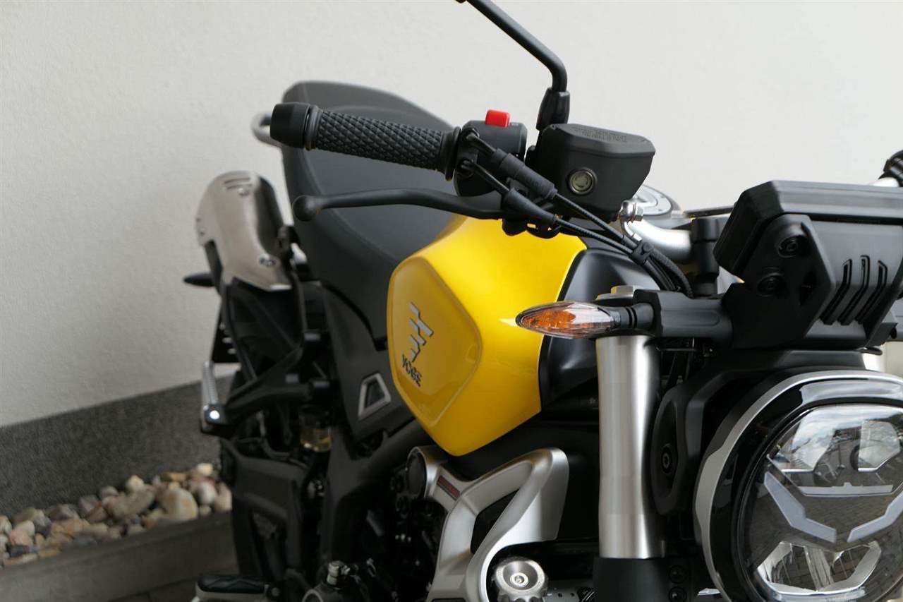 Dvouválcová divoška, co ohromí vzhledem i výkonem. Jsem ztělesněním hbitý síly a drsný elegance. Muší váha (165 kilo) a těžkej výkon (40,8 koní) ze mě dělá divokou bestii, co tě bleskově katapultuje z nuly na sto. Ale neboj! Dokážu jet i poklidný piánko nebo kochací štaci po městě. A hlavně: Díky robustním brzdovejm kotoučům s ABS se nechám okamžitě zkrotit. Nejen síla a rychlost ze mě dělají drsňačku. Drsnej je i můj design. A to doslova. Najdeš na mně hafo detailů se zdrsněnýma povrchama. Drsňáckou atmosféru dotváří fakt temně černá barva, která zdobí většinu mýho těla. Lásku na první pohled podtrhne kombinace oldschoolovýho stylu s ultra moderními prvky. Prostě takový futuretro. Vsadím vejfuk, že se zamiluješ do křivek mý nádrže. U vytržení budeš ze zavěšenýho zadního světla, který vypadá, jako by levitovalo pod sedačkou. Jo, a skvěle si se mnou rozumí taky motorkářky. Těm hraje do karet nejen moje lehkost a snadný ovládání, ale taky fajnovej posez. Sedlo mám totiž v příjemný výšce 780 mm, takže i drobnější moto ladies budou mít nohy pohodlně na zemi bez zbytečnýho šponování. Dvouválcový divočení. Vodou chlazenej dvouválec s objemem 321,8 ccm ze mě dělá hbitou kočku s výkonem, kterej je naprosto srovnatelnej s prvotřídníma mašinama profláklejch značek. Displej přehlednej jako billboard. Sedmipalcová barevná LED přístrojovka ti naservíruje veškerý info tak jasně a přehledně, jako by zářilo na billboardu. Vejfuk s drsňáckým vzhledem i hlasem Rozsah mýho vejfukovýho hlasu mi může závidět kdejakej zpěvák. Když pojedem piánko, bude klidnej jak při rockový baladě. Když to vosolíš, spustím metalovej řev. Vzpřímenej posez na pohodu. Jednokusový provedení sedla ti naservíruje maximální pohodlí. To ještě znásobí příjemná výška sedla, díky který budeš mít haksny v poho na zemi. No, a během jízdy si budeš pochvalovat vzpřímenej posez a tlumení vibrací. Levitující zadní světlo Oválný zadní světlo jako by vzdorovalo zákonům gravitace a levitovalo nad zadním kolem. Díky tomu budeš vypadat jako červená hvězda silnic.