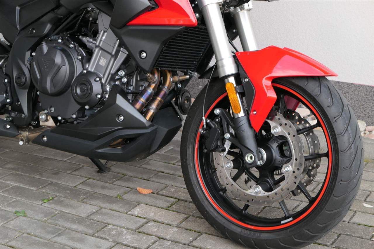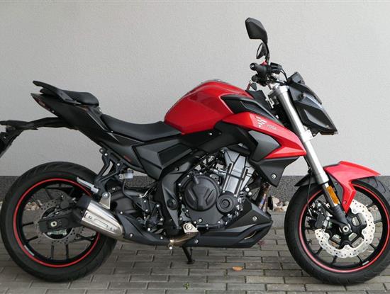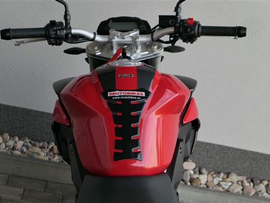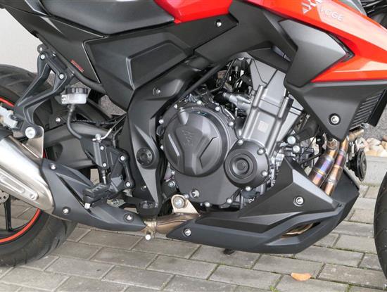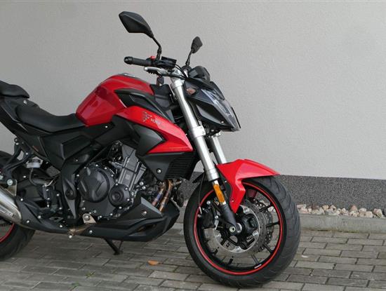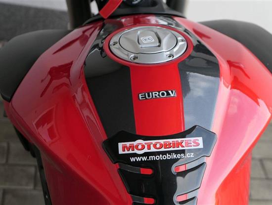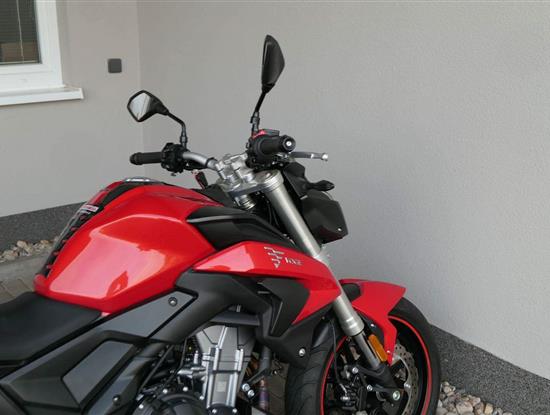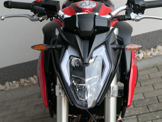Kapalinou chlazený dvouválec, upside down vidlice, brzdy Nissin, Bosch ABS, ostrý design a příjemná cena. To boduje!