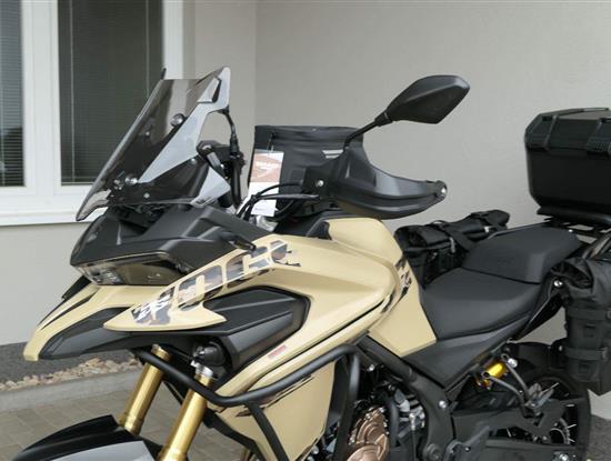 Těšit se můžeš taky na plexi, který si z místa řidiče bez nářadí nastavíš do dvou poloh. Oceníš i hliníkovej kryt motoru, LED světla včetně přídavnejch bodovek, boční i středovej stojan a hafo další výbavičky. Jo, a nově mám taky podsvícený ovladače na řídítkách, takže už žádný tápání ve tmě.