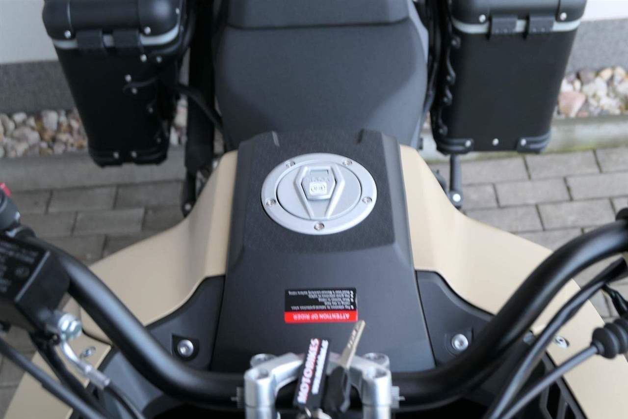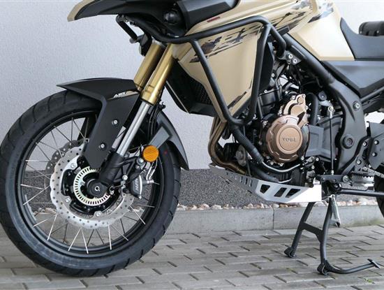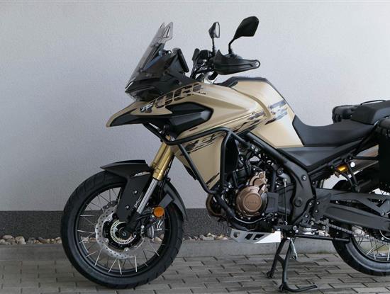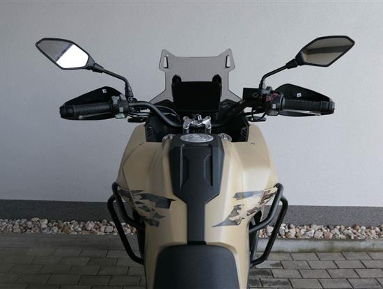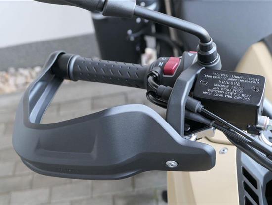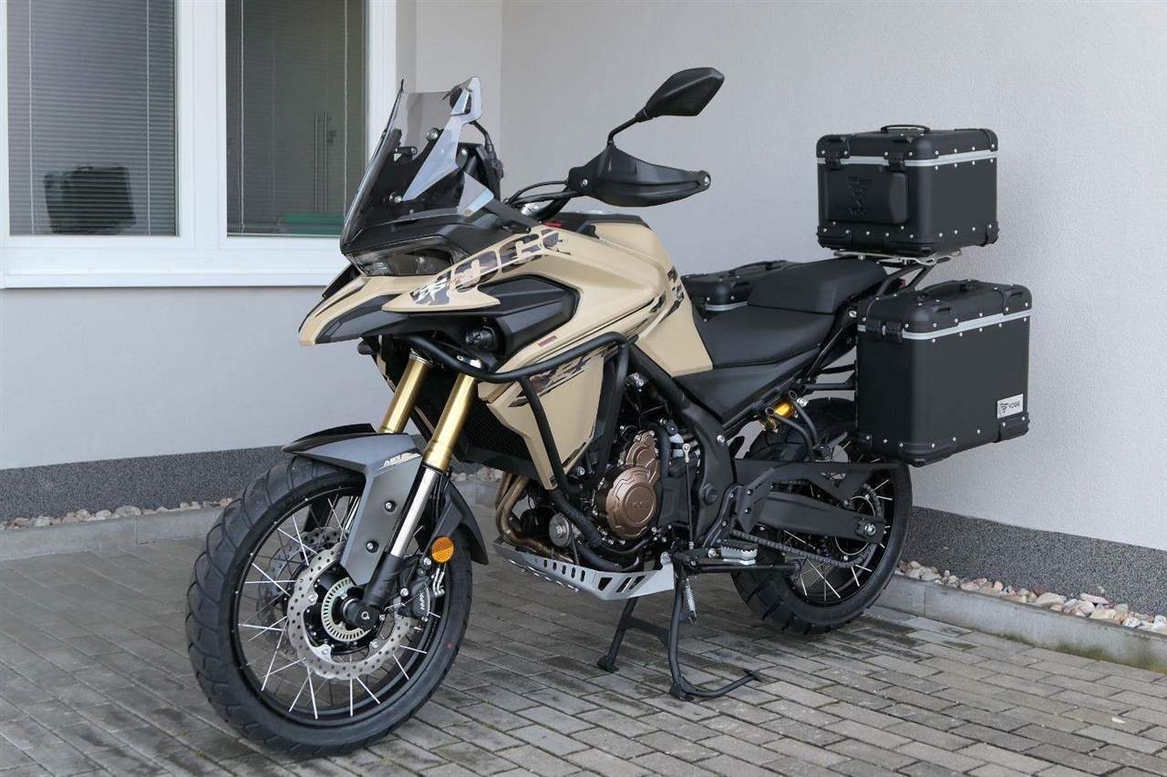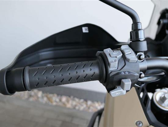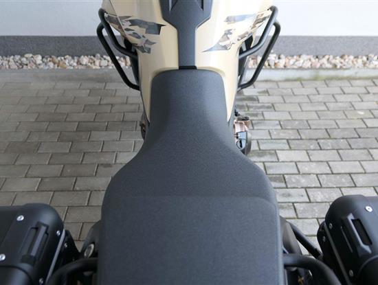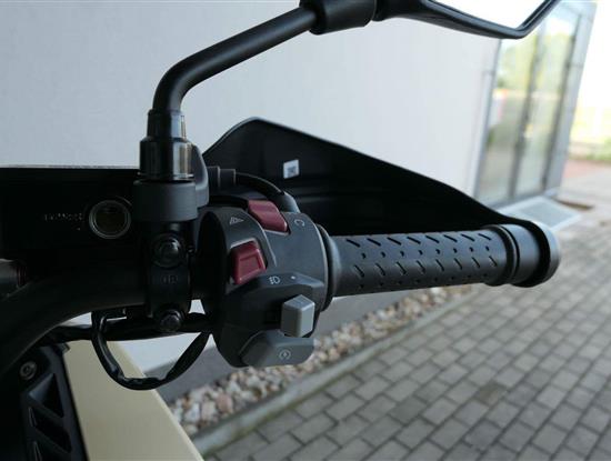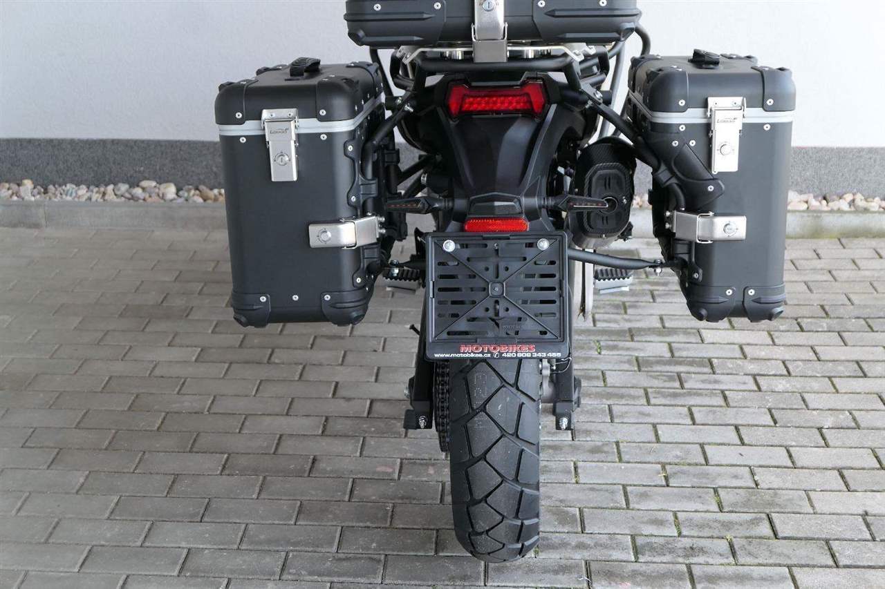 Těšit se můžeš taky na plexi, který si z místa řidiče bez nářadí nastavíš do dvou poloh. Oceníš i hliníkovej kryt motoru, LED světla včetně přídavnejch bodovek, boční i středovej stojan a hafo další výbavičky. Jo, a nově mám taky podsvícený ovladače na řídítkách, takže už žádný tápání ve tmě.