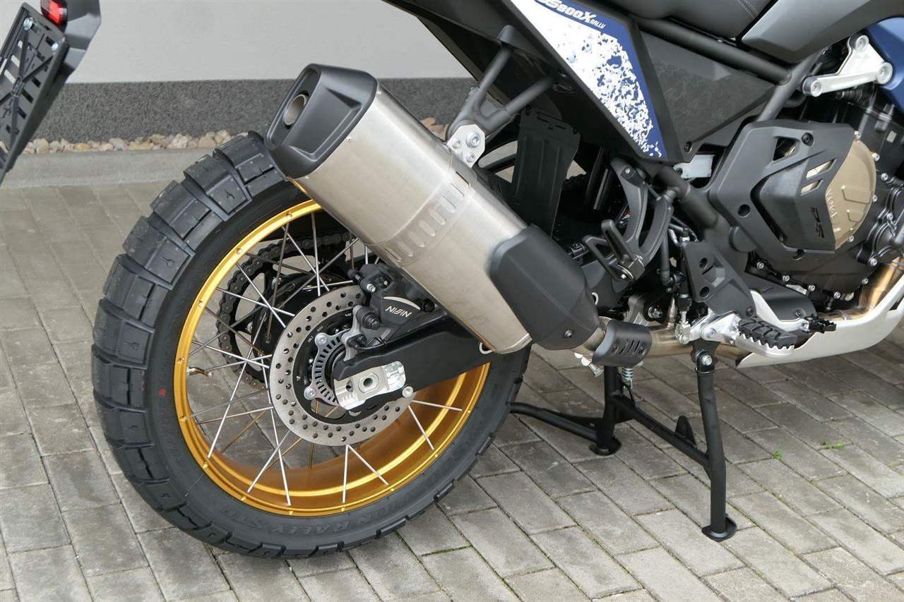 Vpředu najdeš jednadvacítku, vzadu osmnáctku – prostě offroad klasika. Kola jsou samozřejmě drátový a bezdušový. Na ráfkách dostaneš gumy Pirelli Scorpion Rally STR, který si hravě poraděj jak s asfaltem, tak s terénem.
