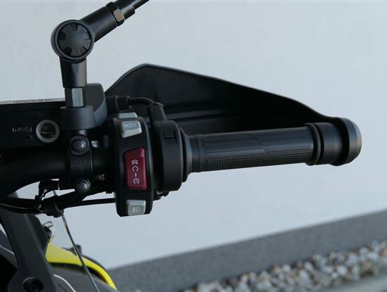 Displej na stojáka, abys na něj viděl i ze stupaček. Na barevnej TFT displej s vysokým jasem a kontrastem krásně uvidíš i za toho nejvostřejšího slunka. A že je postavenej na vejšku? To není náhoda – když vyskočíš do stupaček, máš pořád perfektní přehled. Displej můžeš ovládat přes chytrý udělátka na řídítkách a přes blůtůčko si ho spáruješ s mobilem.