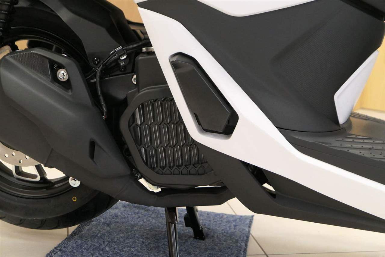 Nevěř řečem o tom, že vysoký kola jsou nudný. Pod ladnýma křivkama tepe spolehlivej, kapalinou chlazenej, čtyřtaktní jednoválec vo objemu 125 ccm. Město mu sedí jak dobře padnoucí oblek. S krouťákem 11 Nm při 6 500 otáčkách a výkonem skoro 12 koní zmákneš křižovatky i městský obchvaty. Trochu pootočíš zápěstím a akcelerace s hladkou automatickou CVT převodovkou se o všechno postará.